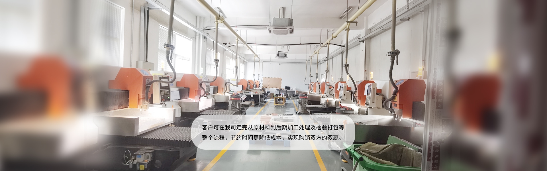 備有足夠量的庫存品外,另配套研磨機、裁切機、加工車間及各種加工機械設備70余臺